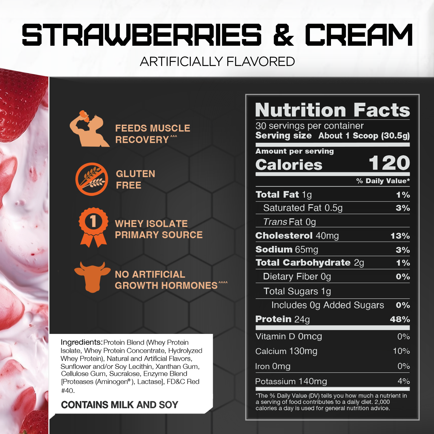– #1 protein source = whey protein isolate.